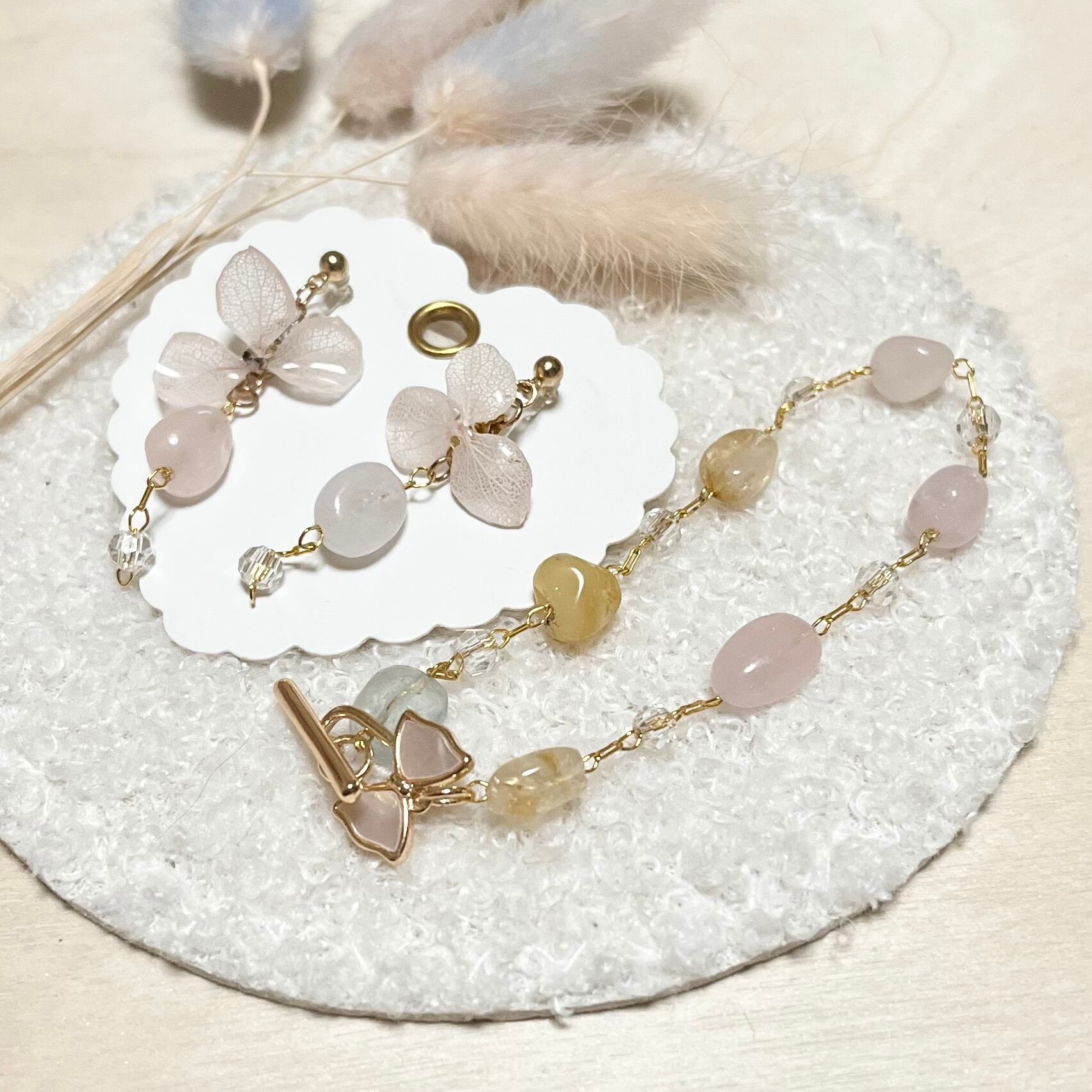 同じ天然石を使用した、イヤリングとブレスレットのセットです♪