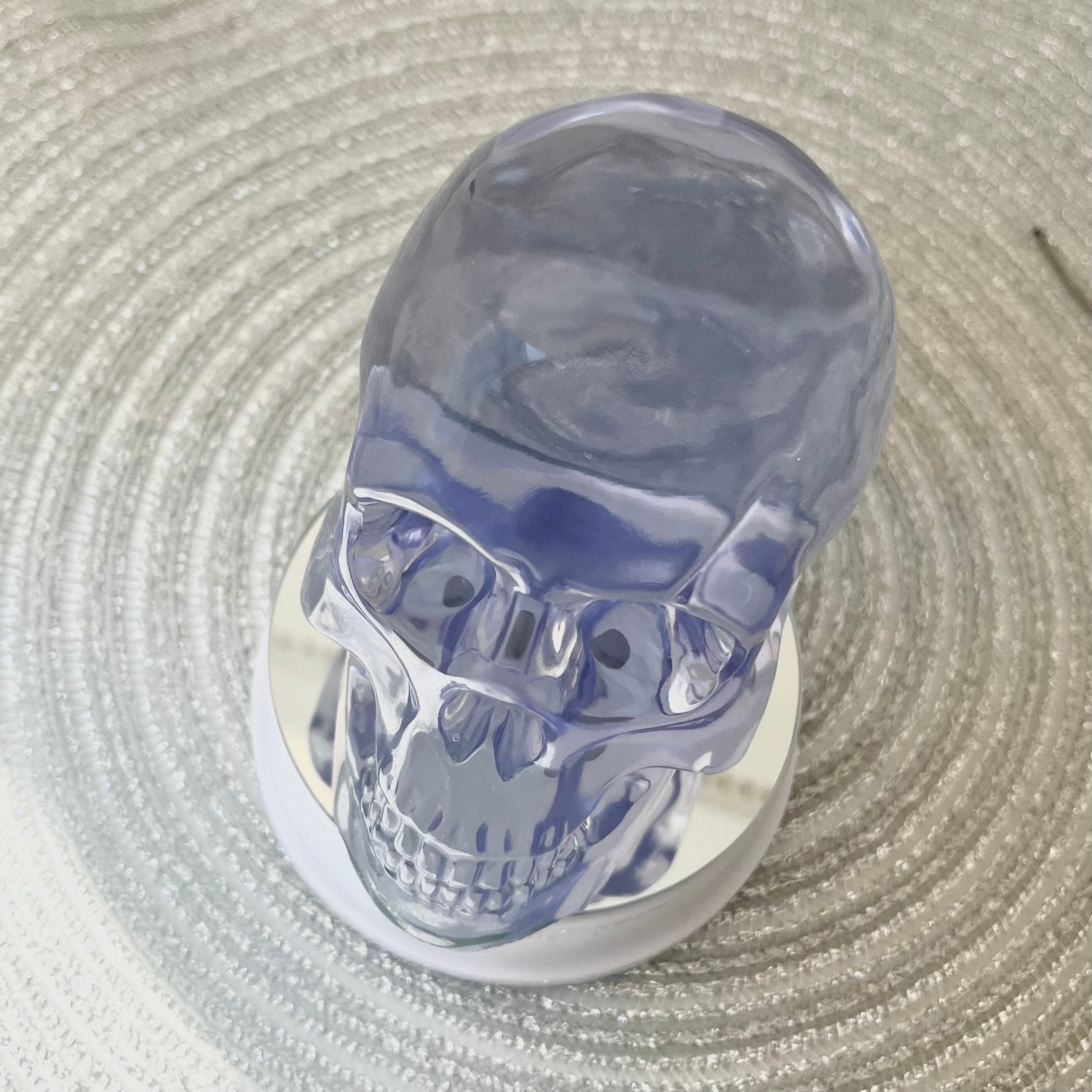 クリスタルのように透明感あふれるレジンで成形したスカルオブジェです。