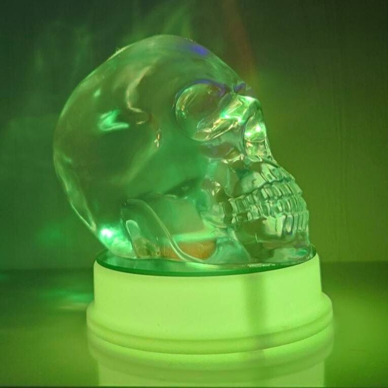 光と透明感が織りなす、幻想的なスカルオブジェ
